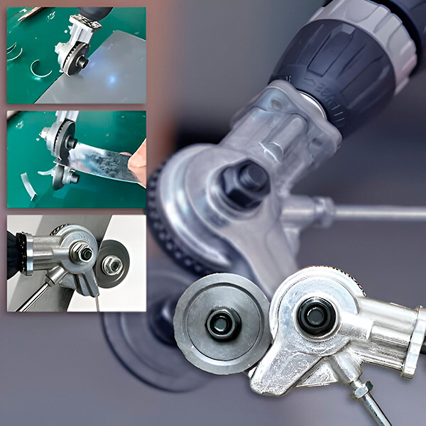 Przystawka tnąca jest kompatybilna z większością wiertarek dostępnych na rynku, dzięki czemu można jej bezproblemowo używać z istniejącymi narzędziami. Pozwala to na cięcie szerokiej gamy materiałów, w tym stali nierdzewnej, żelaza, miedzi, aluminium, siatki metalowej, PVC i innych.