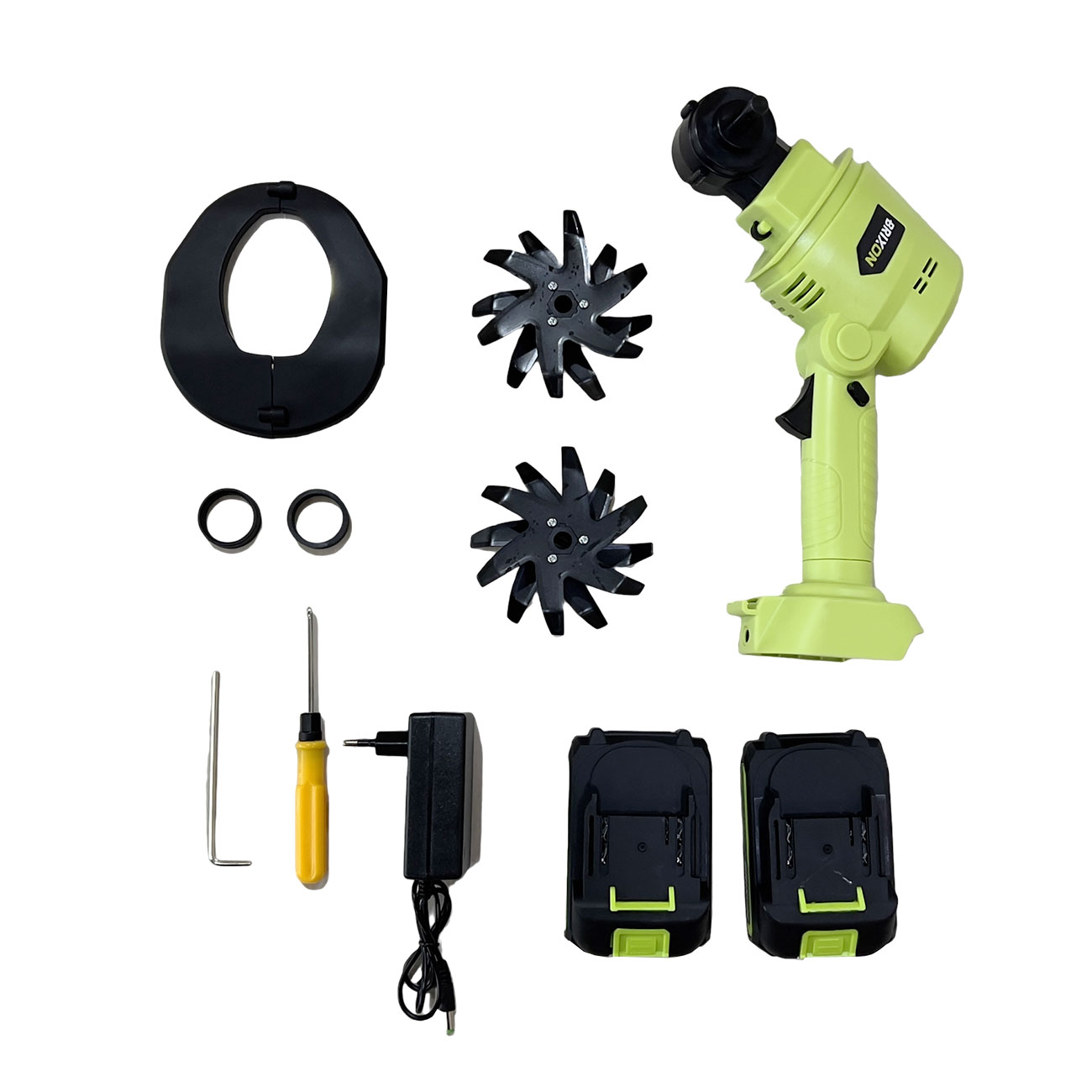 Zawartość zestawu: Ręczny akumulatorowy mini kultywator (jednostka napędowa)