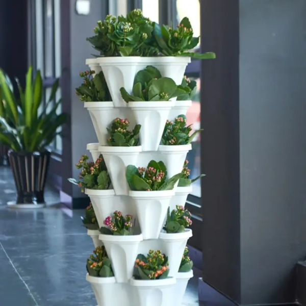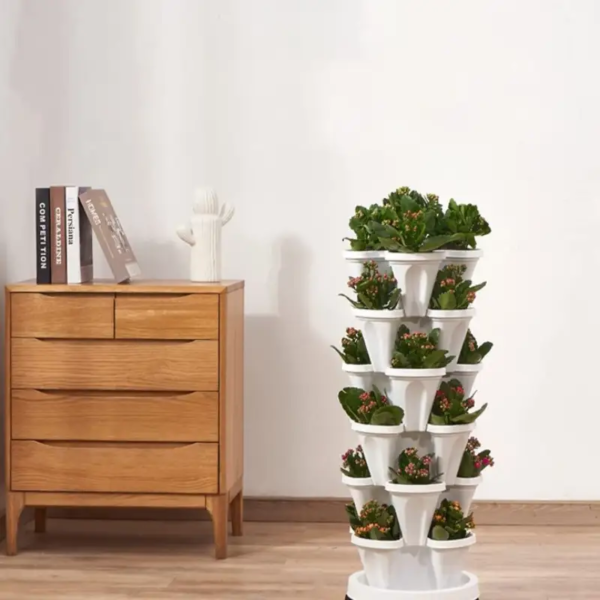 Doniczki, które można ustawiać jedna na drugiej, to świetny zestaw startowy do uprawy pysznych truskawek, bujnych kwiatów i aromatycznych ziół.