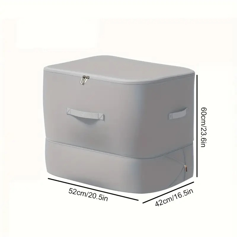 Sprytny kompresyjny zamek błyskawiczny pozwala na łatwe zmniejszenie objętości bez konieczności użycia prądu lub odkurzacza. Praktyczne i szybkie rozwiązanie dla każdej garderoby.