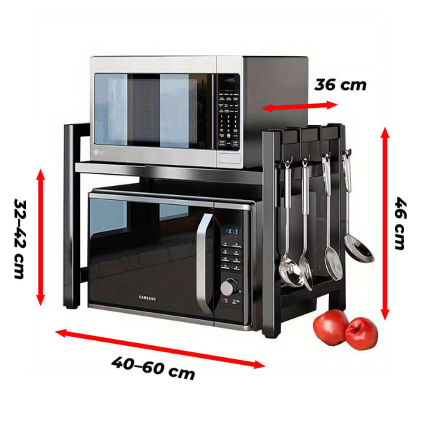 Używaj stojaka dokładnie według swoich potrzeb - mikrofalówka, garnki lub słoiki z przyprawami zawsze znajdą swoje miejsce.