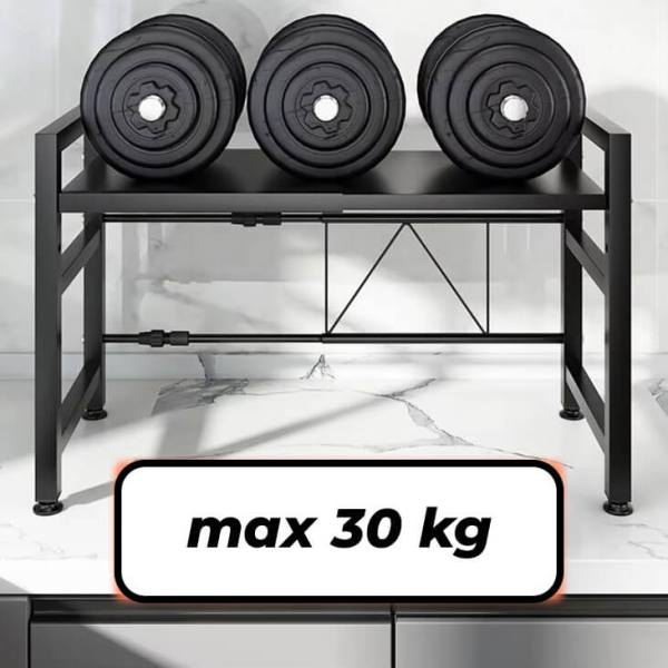 Solidna żelazna konstrukcja poradzi sobie nawet z cięższymi urządzeniami - od kuchenek mikrofalowych po blendery. Udźwig do 30 kg gwarantuje, że wszystko pozostanie na swoim miejscu.