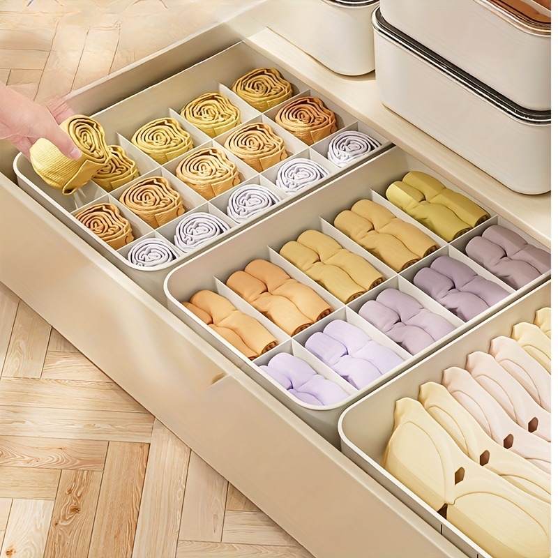 Praktyczny zestaw organizerów, który pomoże utrzymać szuflady, szafy i komody w idealnym porządku. Dzięki podzielonym przegródkom można łatwo przechowywać skarpetki, majtki, biustonosze lub inne małe ubrania, aby zawsze były uporządkowane i zawsze pod ręką.